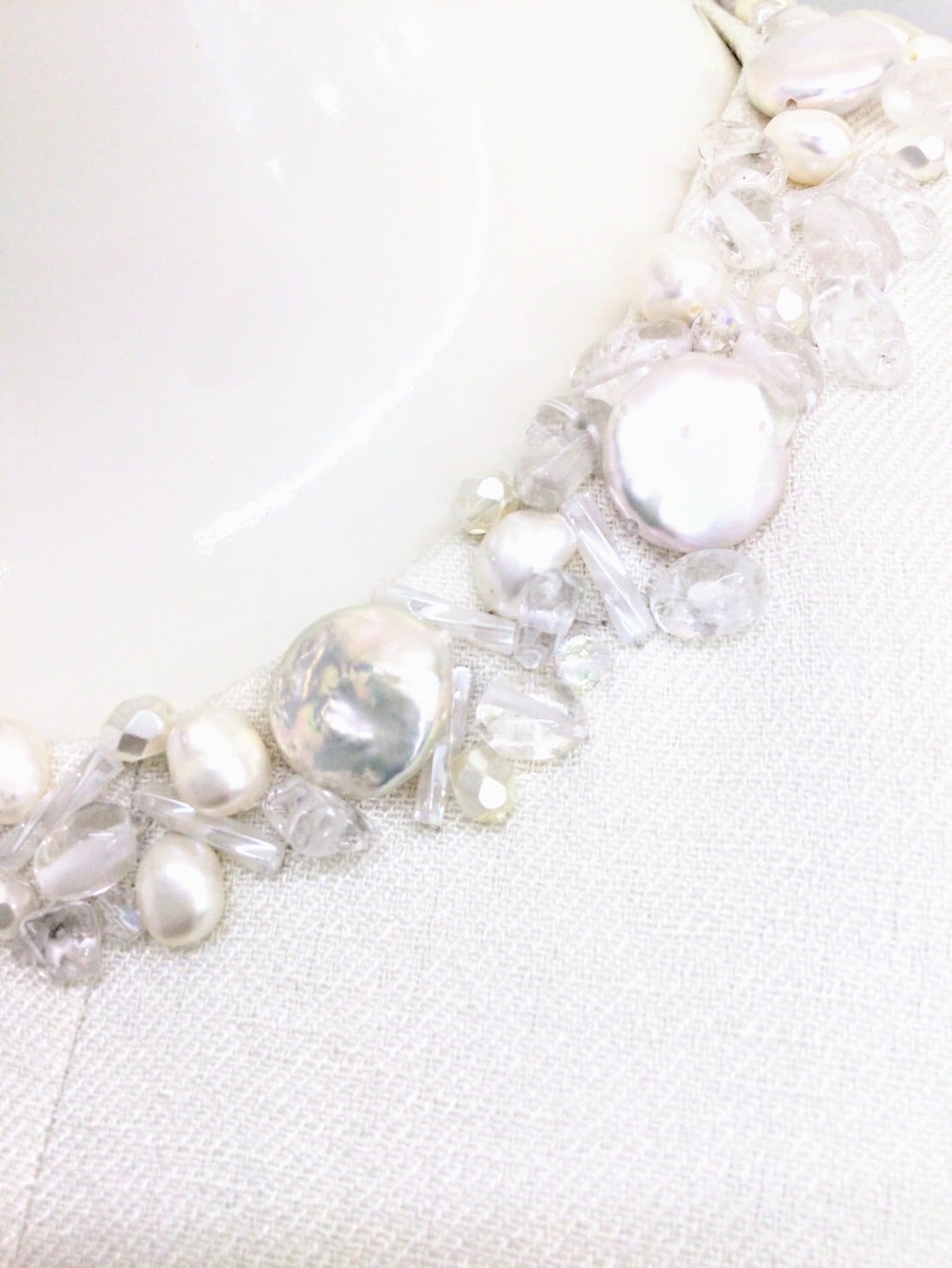 袖口には、幸福のパワーストーンクリスタル水晶を2つ使用(貴女に幸せが訪れますように・・)