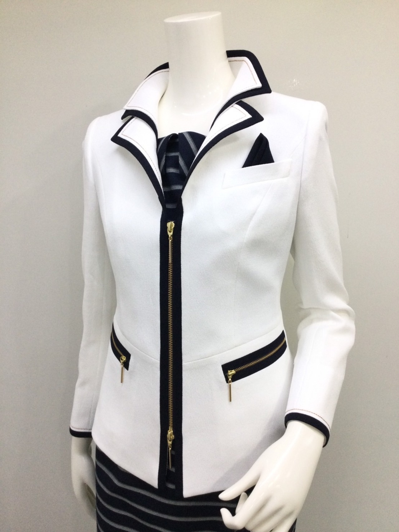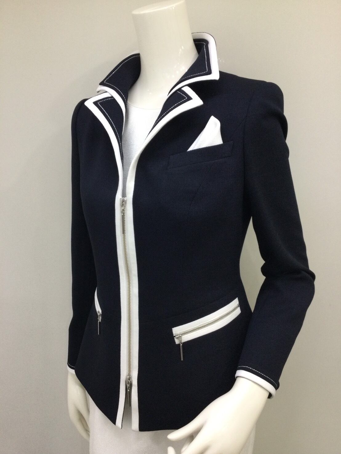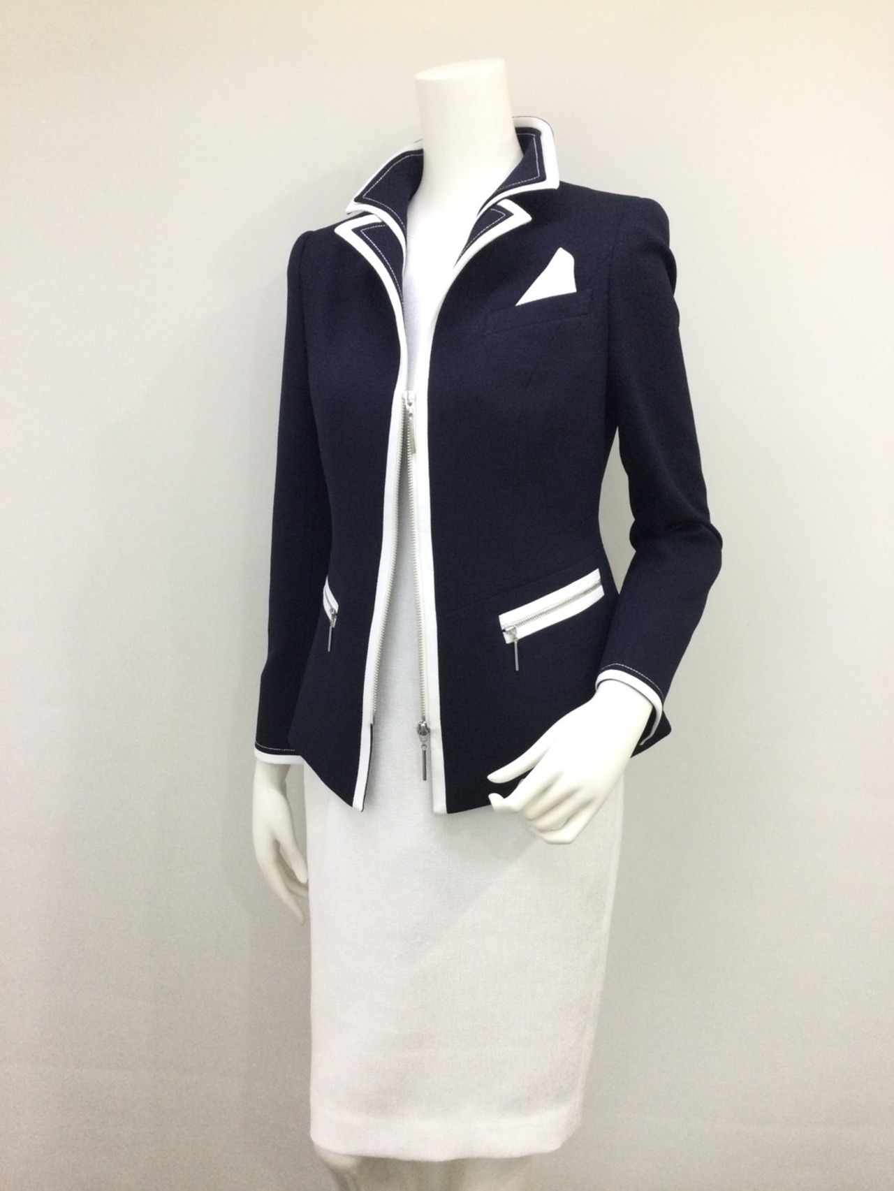 *濃紺xオフ白縁どりジャケット ファスナーとファスナー飾り、ステッチはシルバー