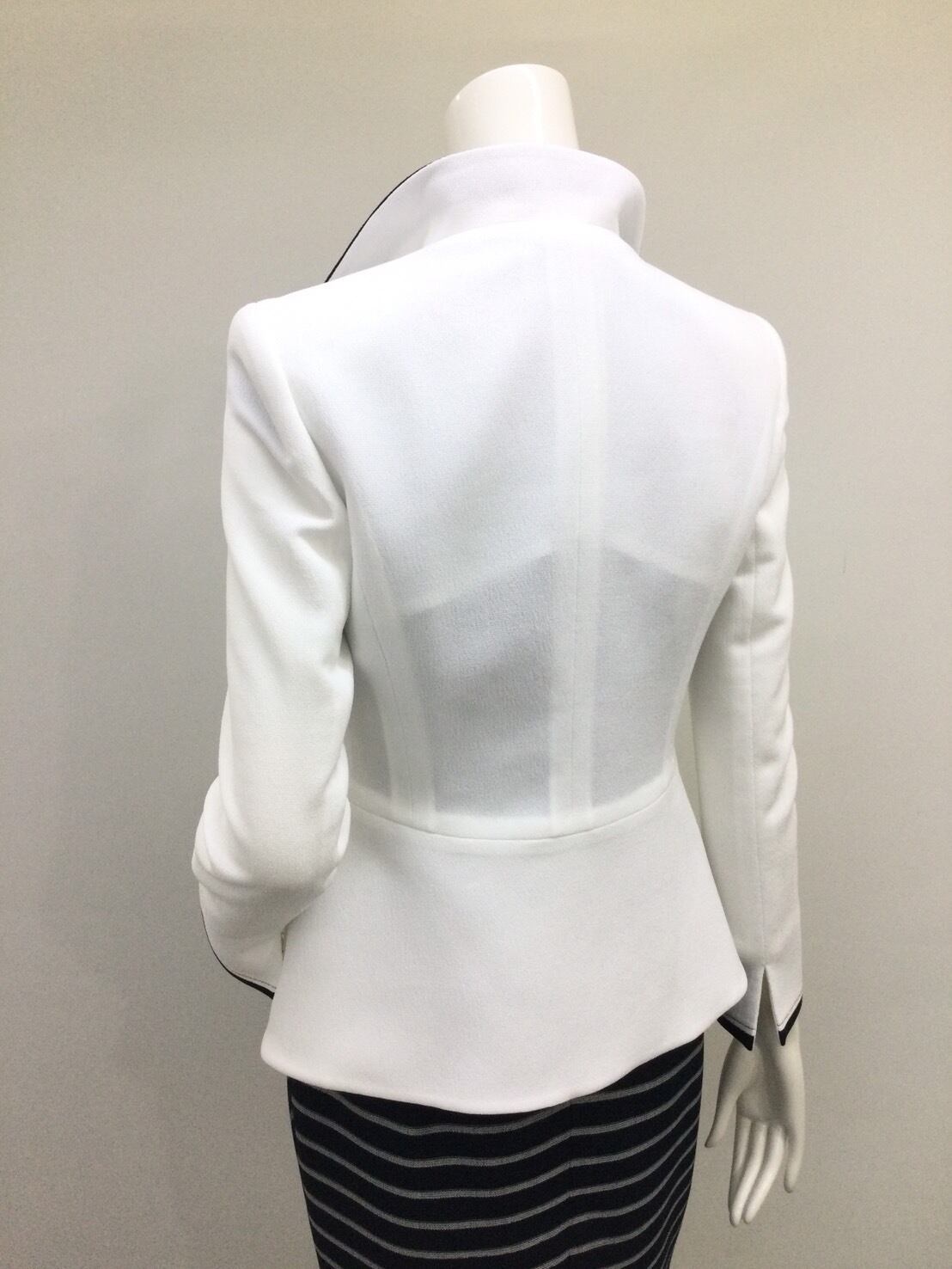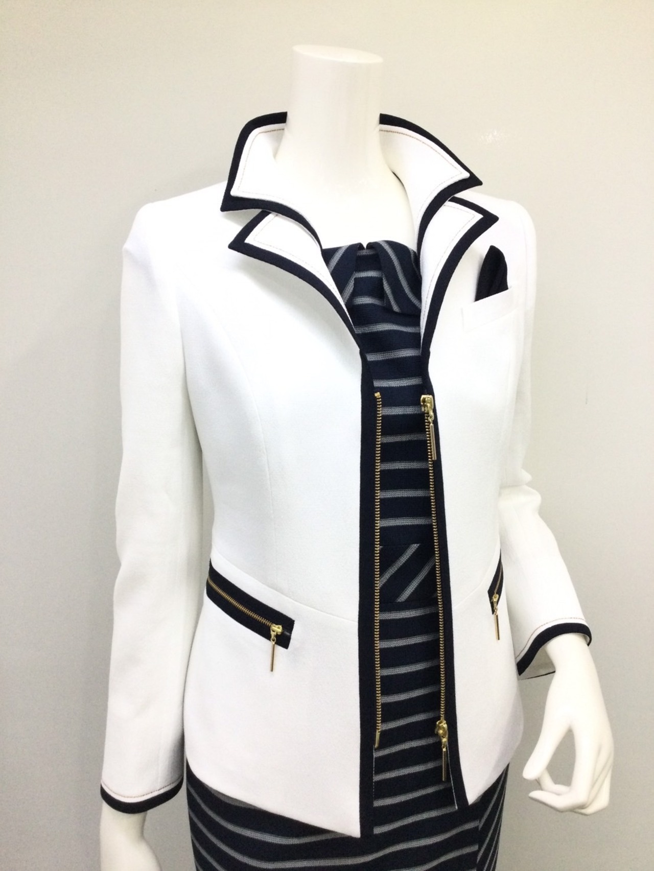 *オフ白x濃紺縁どりジャケット ファスナーとファスナー飾り、ステッチはゴールド
