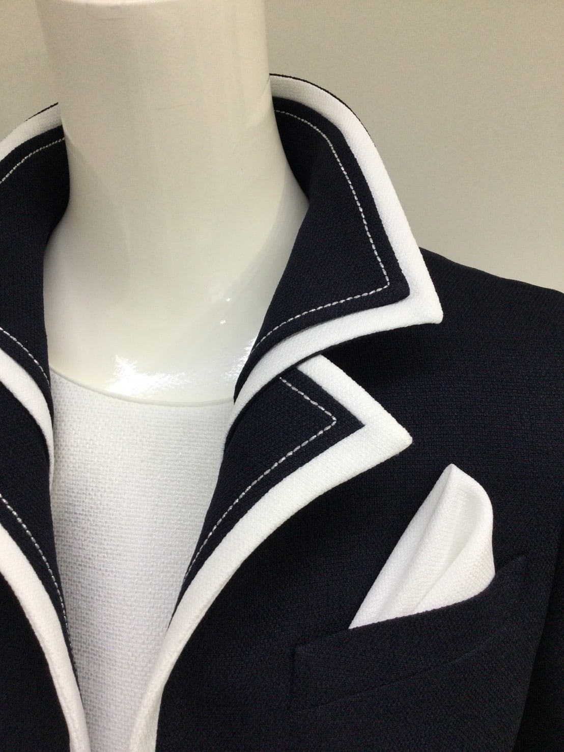 *濃紺xオフ白縁どりジャケット ファスナーとファスナー飾り、ステッチはシルバー