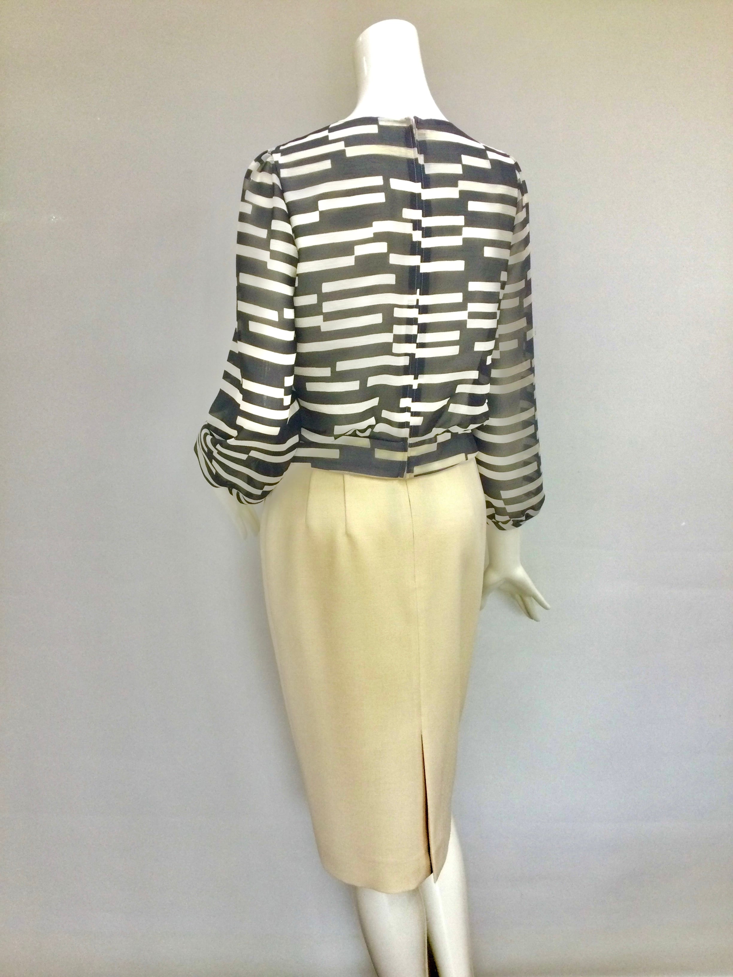 251-0506 ベージュブラックブラウス&スカートセット42号