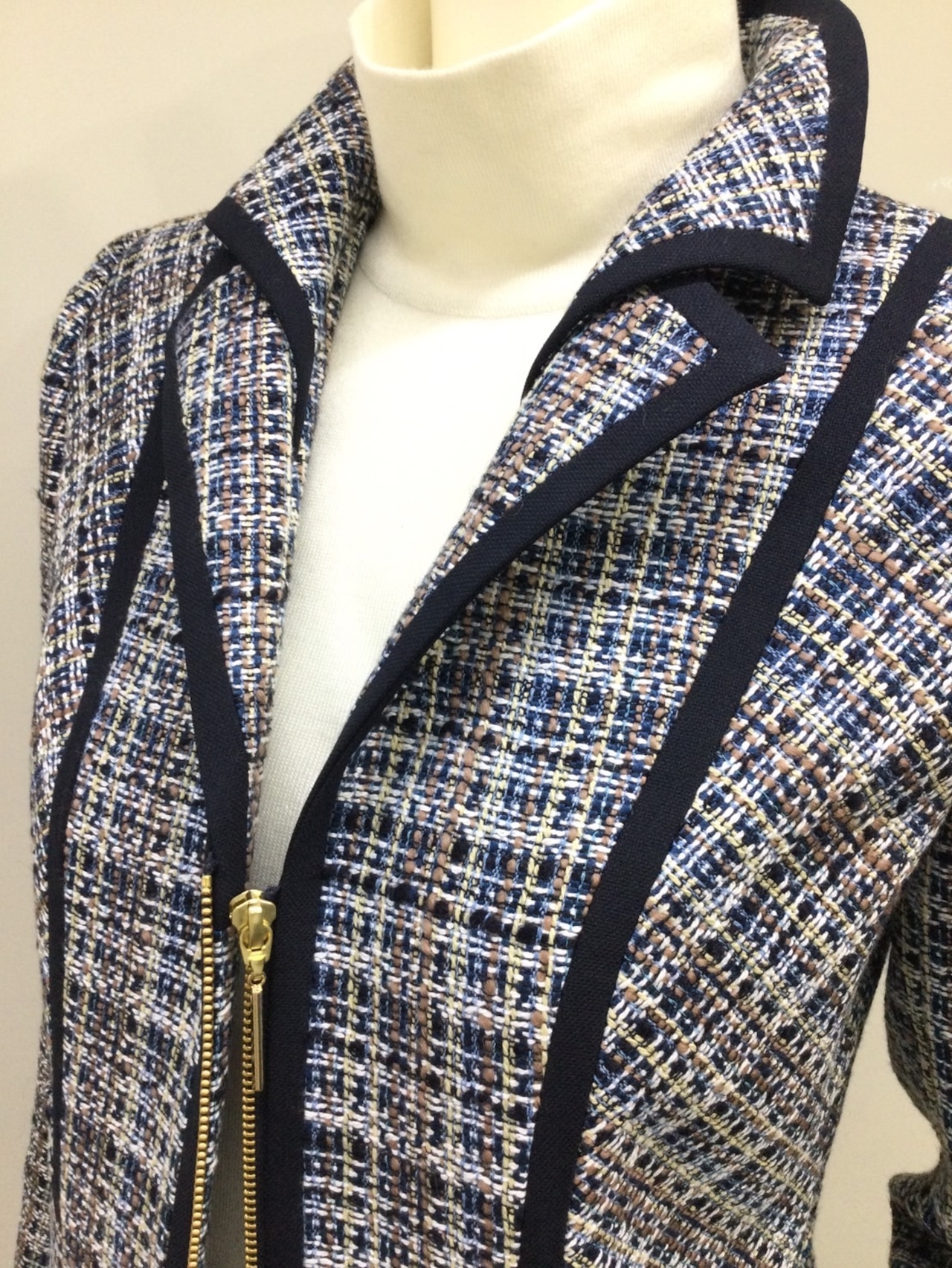 252-1686(紺x白)【ツィードゴールドファスナージャケット】