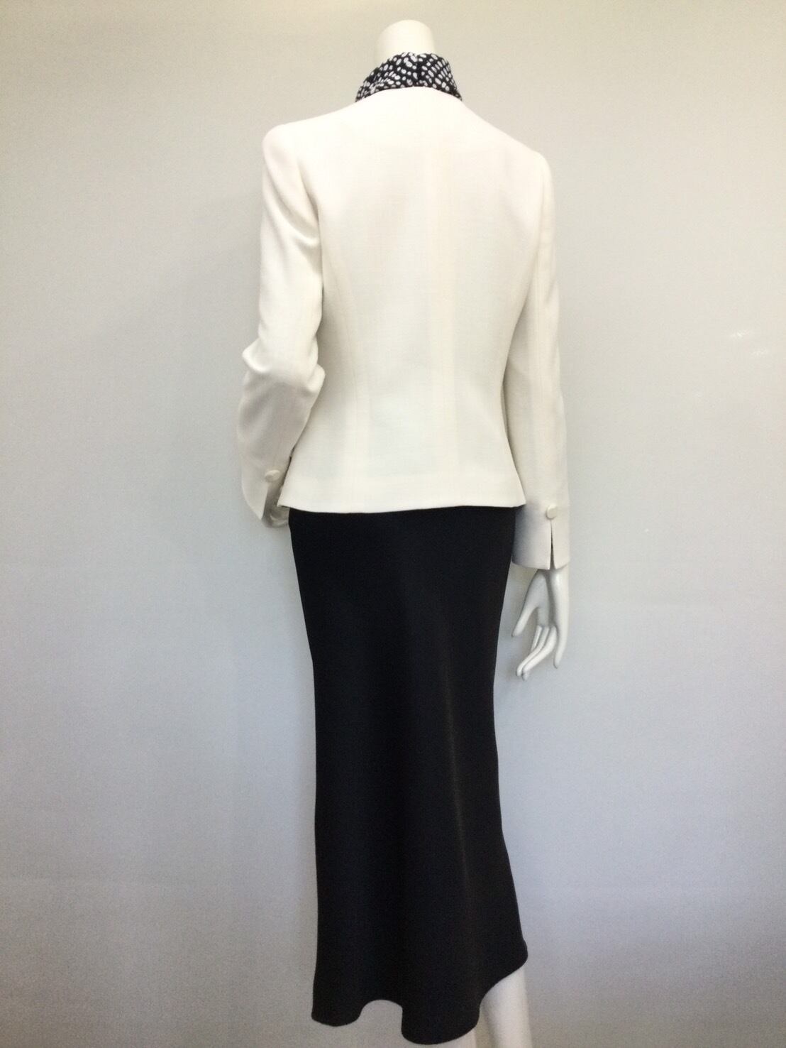 252-3519(オフ白ジャケットx白黒ブラウスx黒スカート)【大人エレガンス スリーピース】