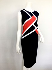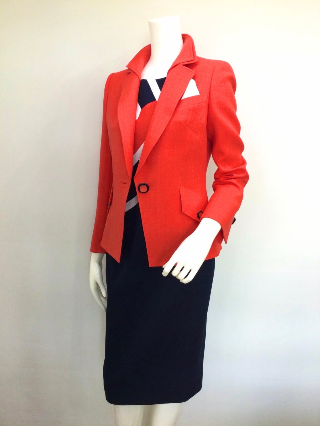 S261-4973(オレンジジャケットⅹ濃紺ワンピース)【ジオメトリアンサンブル】