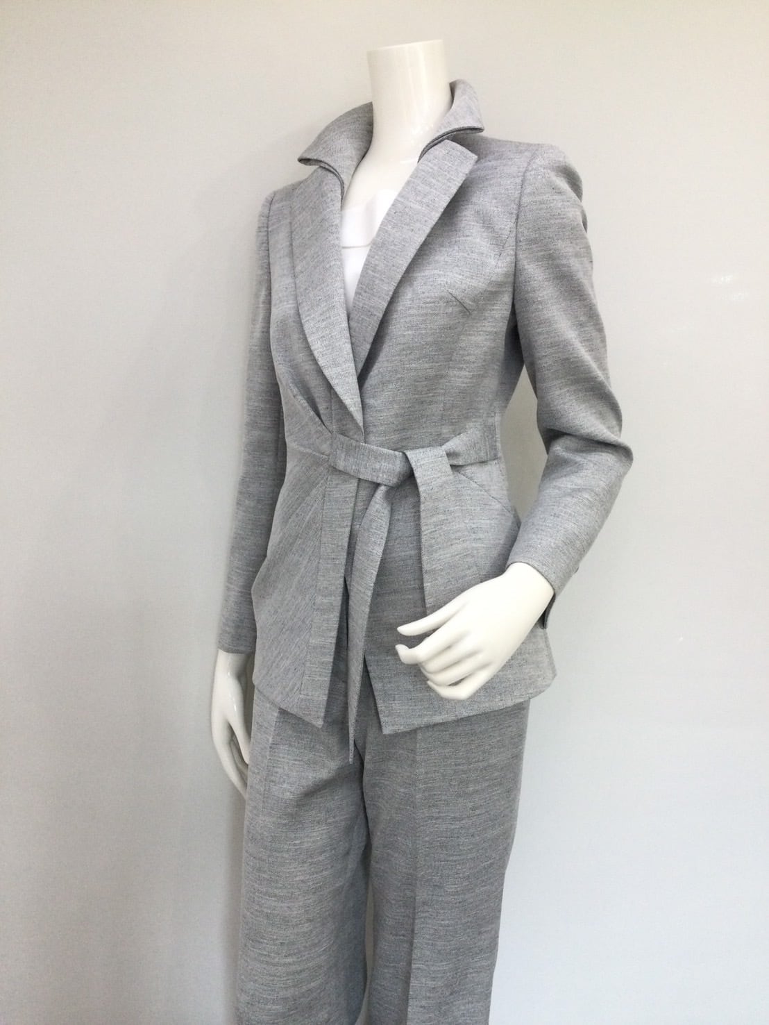 S261-2446(杢グレー 濃紺)【ベルテッドパンツスーツ】※2月中旬上がり予定