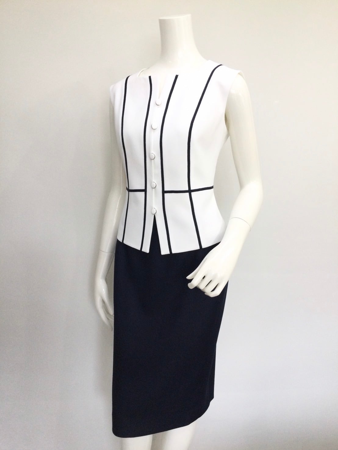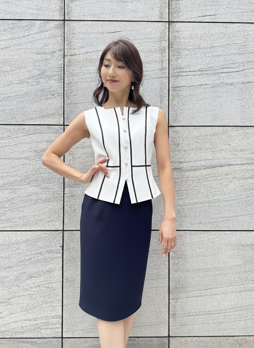 濃紺ジャケットxオフ白ジレx濃紺スカート
