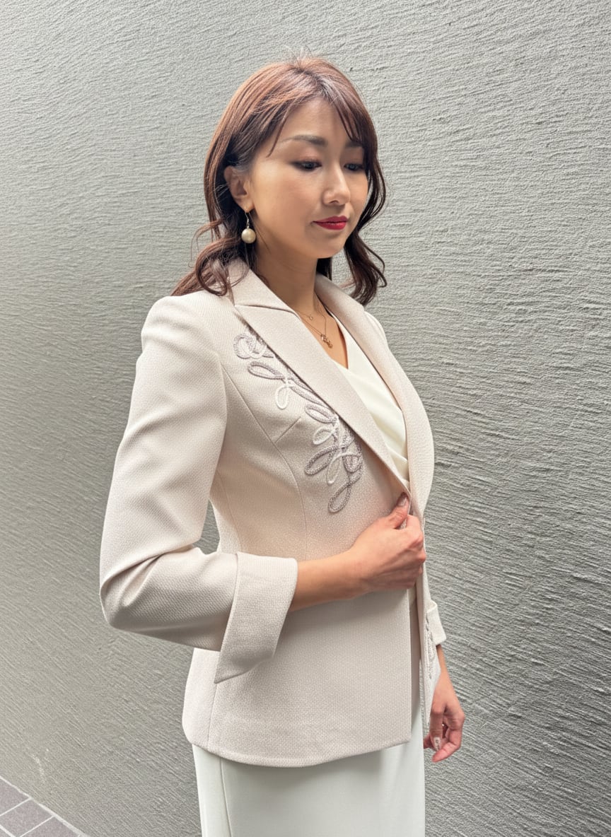 S261-1694(ベージュ )【リリアン刺繍ジャケット】