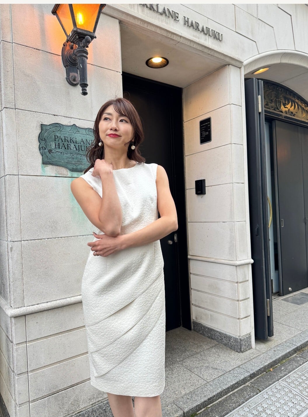 色展開 オフ白ジャケットⅹオフ白ワンピース
