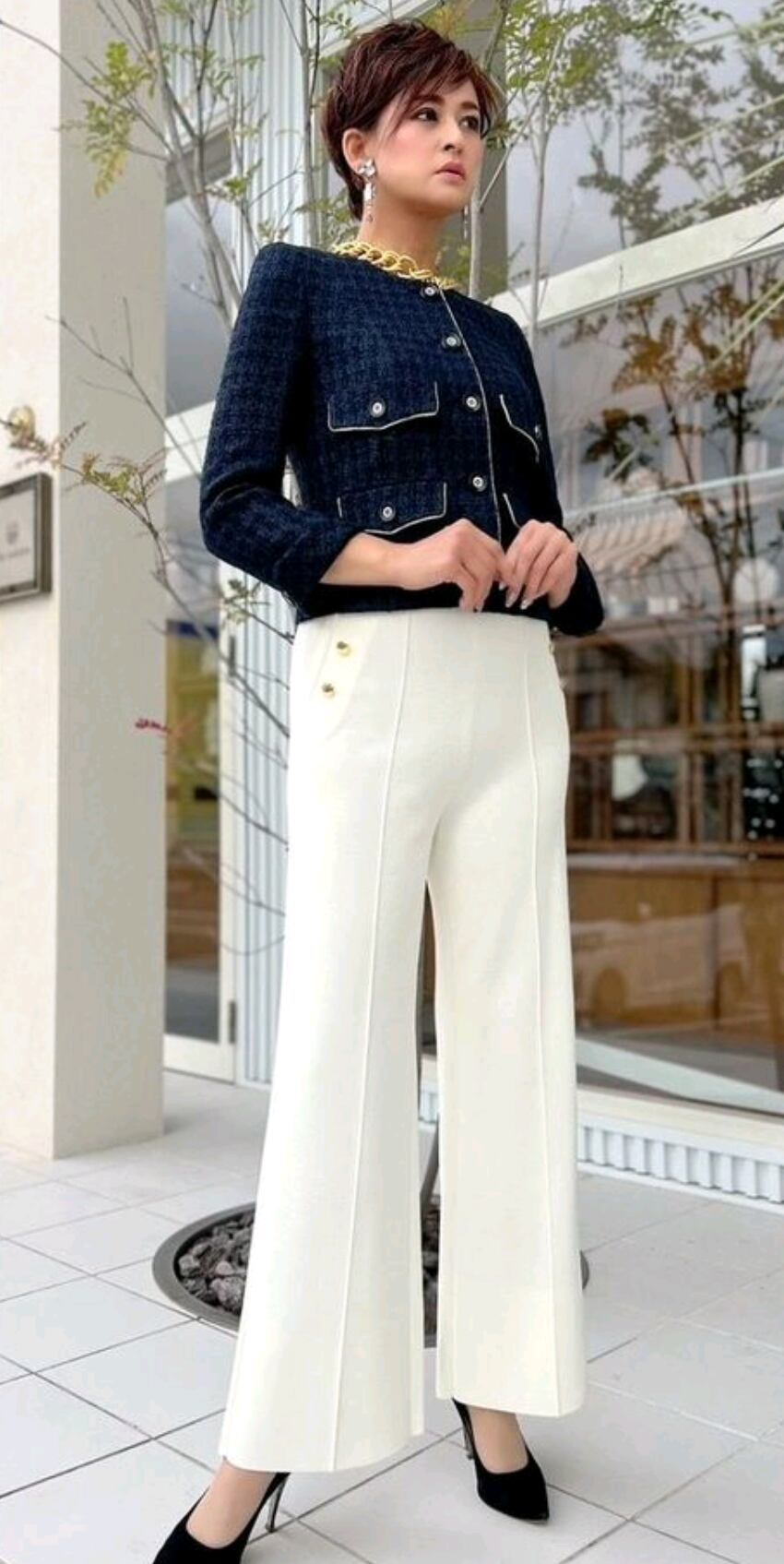 *パンツにもスカートにも合う万能ジャケットです。(デニムやロングプリーツスカートにも相性良いです。色々合わせてコーディネートを楽しんでください。)